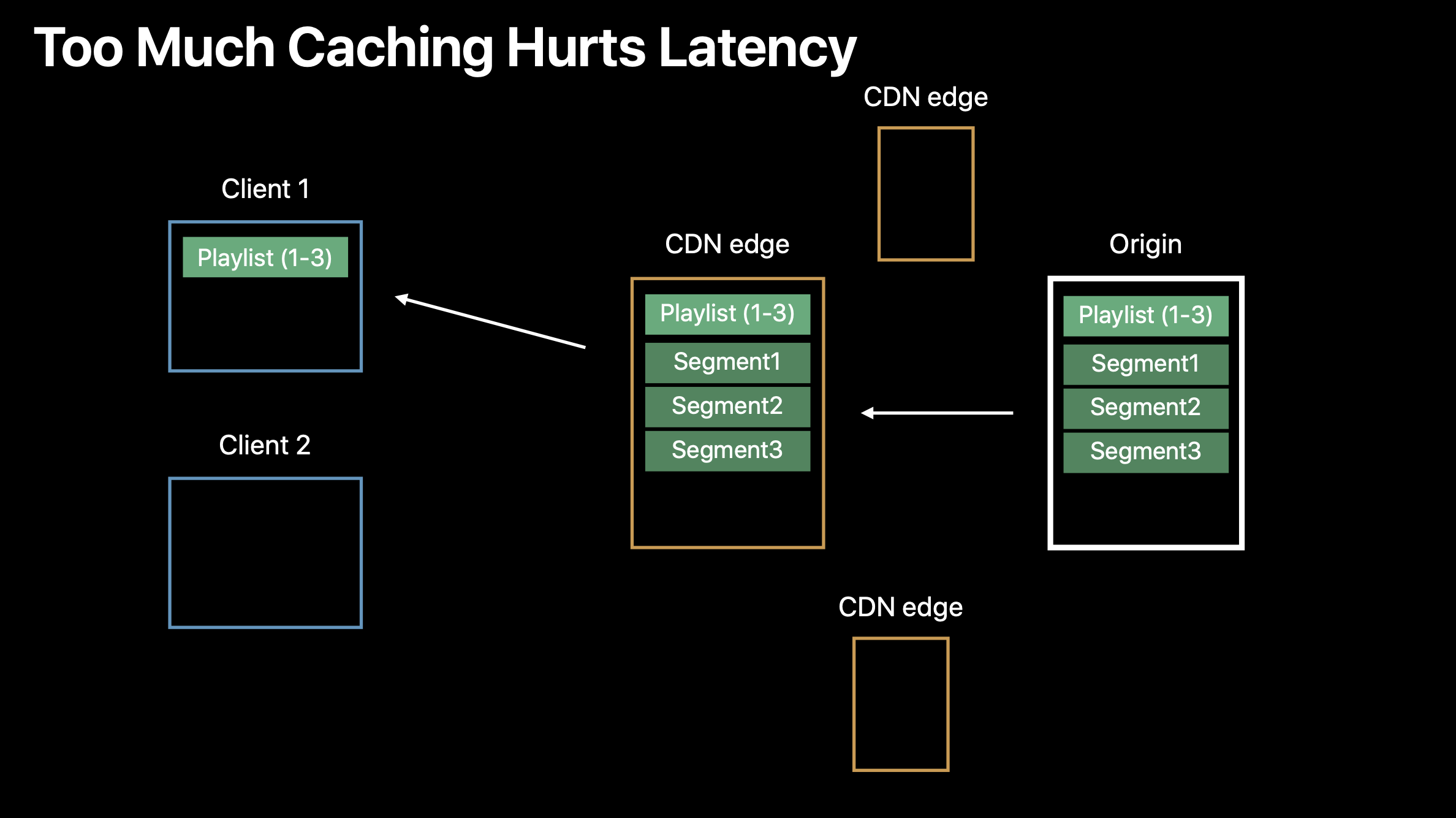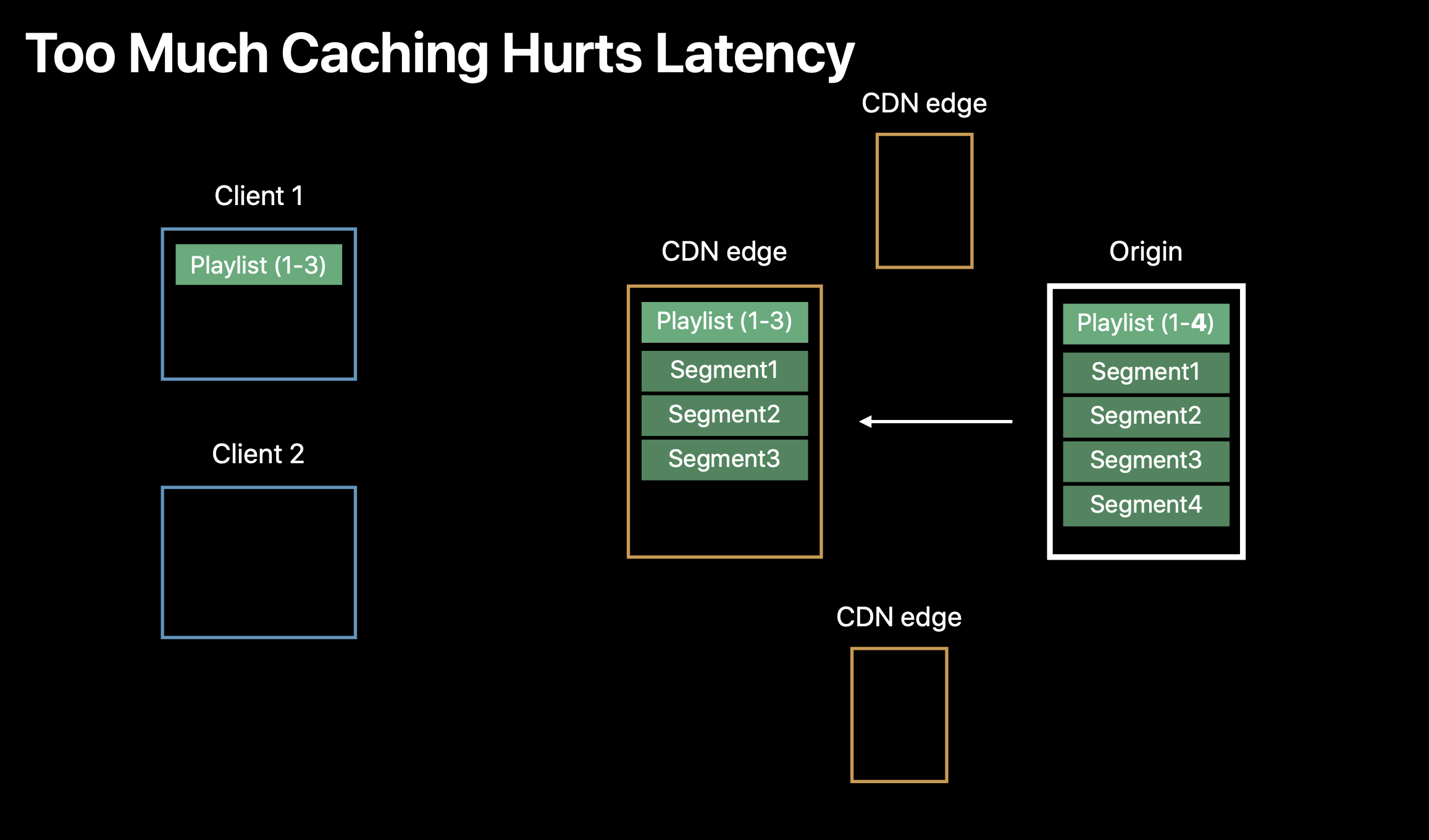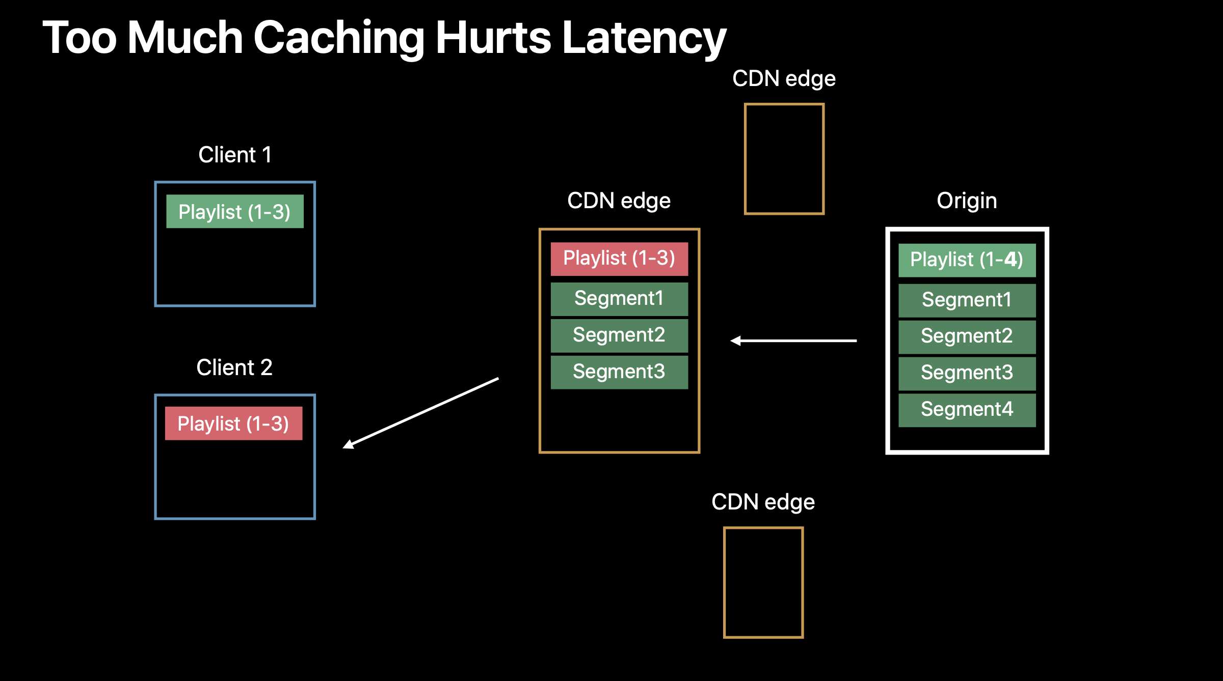 Problem: Due to the polling mechanism in traditional HLS, it could take up to 6 seconds for clients to discover new segments.