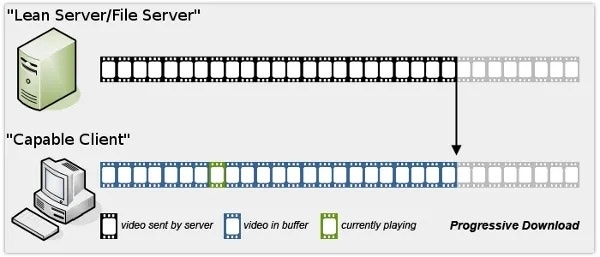 It is called Progressive Download because the file is downloaded sequentially (progressively) while playback can occur simultaneously. Rather than waiting for the entire file to download, playback can begin once a certain amount of data accumulates in the buffer, which improved the user experience. However, strictly speaking, this is a download rather than streaming in the modern sense.